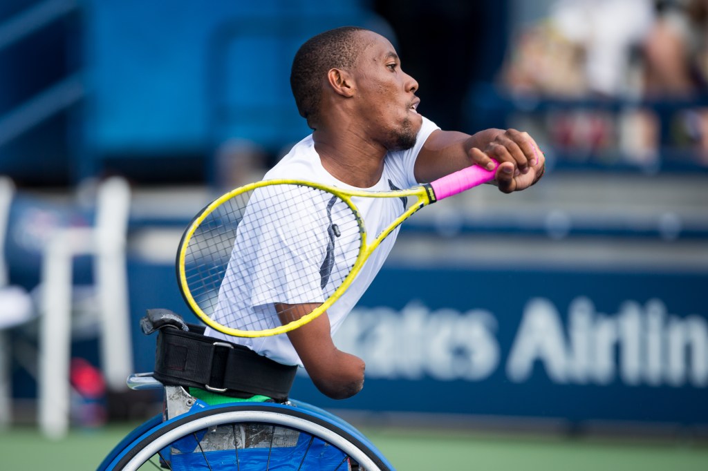 - Lucas Sithole (RSA) competes at the 2014 US Open in Wheelchair Quad Singles. Photo by Michael A. Clubine.