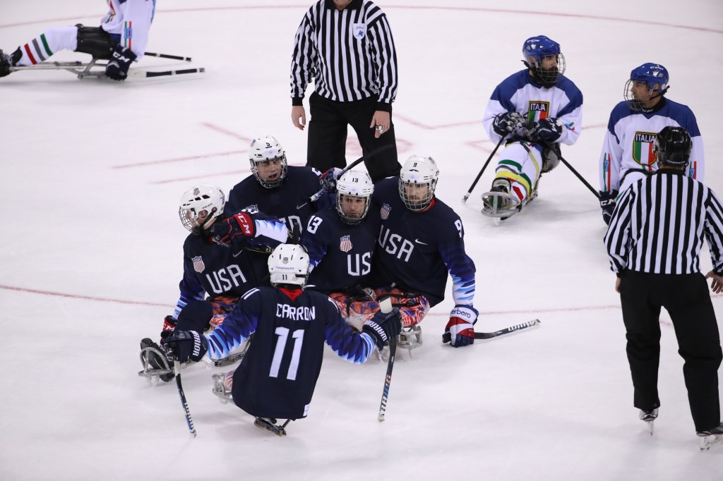 GANGNEUNG, South Korea — The sky outside Gangneung Hockey Centre was grey and green, bleek. The winds were strong. The rain was starting to come down in buckets. It was quite ugly. However, as bad as things were outside, inside for Team Italy, it was way worse. They had to meet up with a U.S. Sled Hockey Team that averaged over nine goals per game (9.333333 to be exact), and so far has allowed a meatball (that’s a big ol’ zero) into goal thanks to the play of Steve Cash and Jen Lee in goal along with the speed of the Team USA defense. The storm was brewing in the arena, and the forecast called for a trip to the finals with a chance of reign.