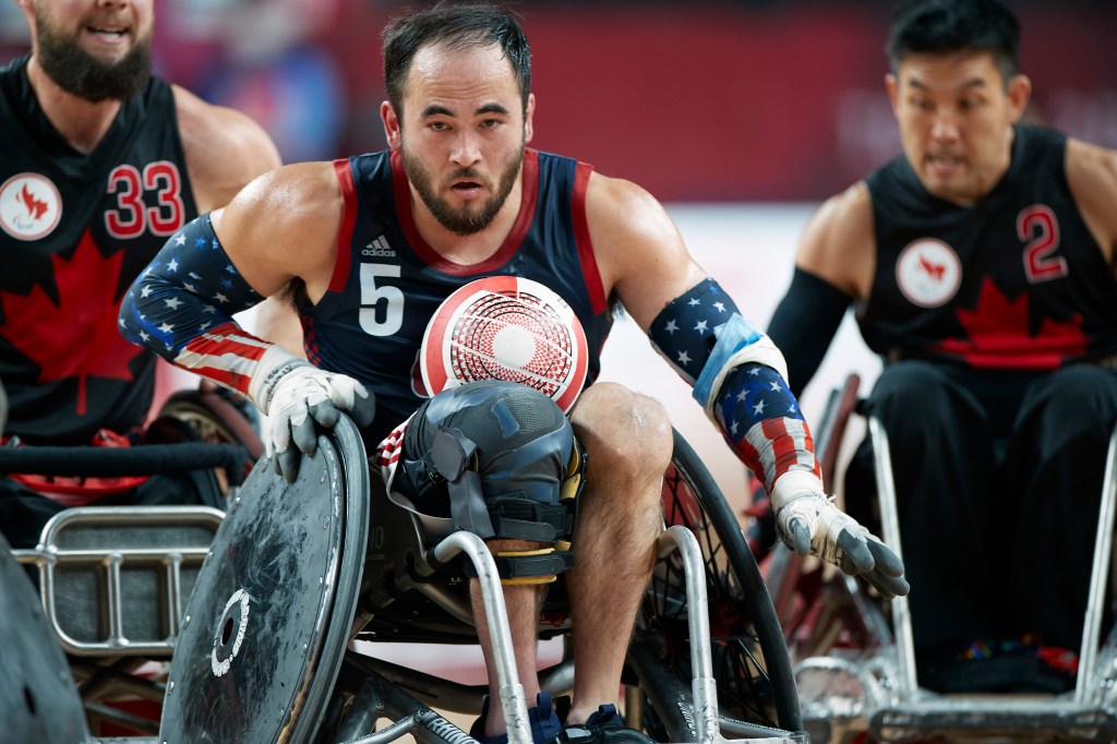 TOKYO, Japan — The United States Wheelchair Rugby Team beat New Zealand yesterday at their very first Tokyo 2020 Paralympic match, winning 65-35 and starting strong. Today they kept the momentum up, winning against rival Canada 58-54 in the pool phase for group B, led by Team USA flag-bearer Chuck Aoki with 30 tries.