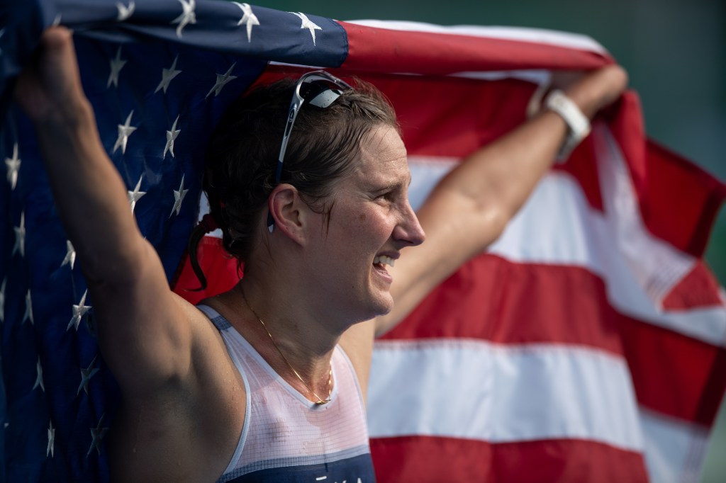 At the end of her race, Stockwell stayed by the finish line, supporting every athlete who had not finished yet, celebrating everyone’s efforts during the long race in scorching and humid weather that made it even more challenging for everyone competing.