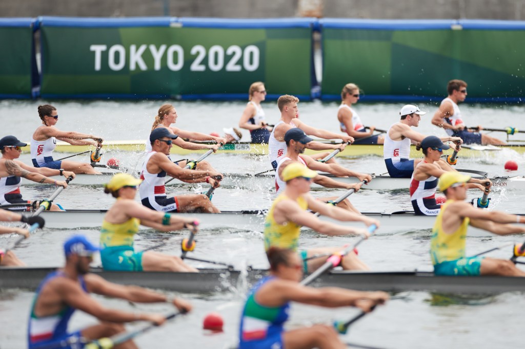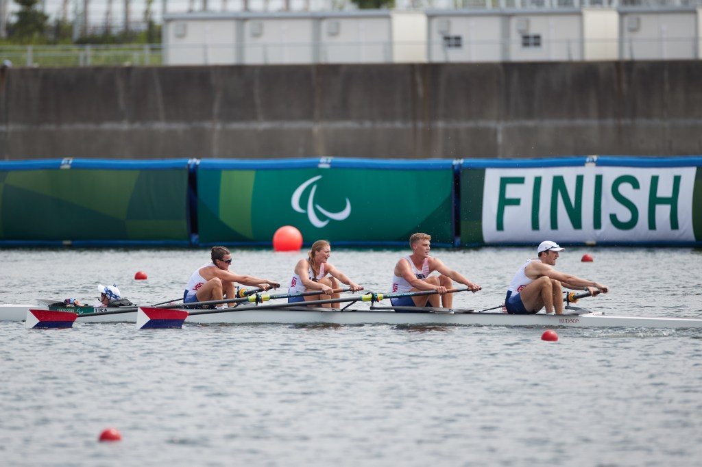 TOKYO, Japan —- The screens at the Sea Forest Waterway broadcasting the PR3 mixed coxed four displayed mainly one image for the last couple of minutes of the race: The British pulling and pushing in the lead and the U.S. team rowing right at their heels.