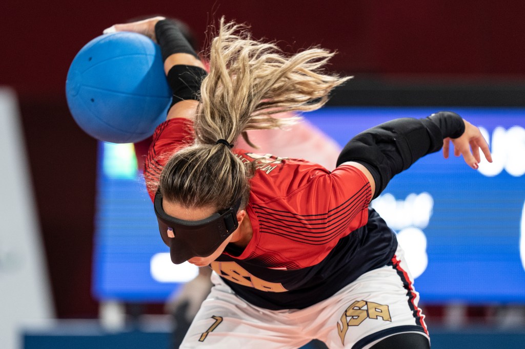 Young’s girlfriend, Eliana Mason of the U.S. goalball women’s team, could be heard yelling encouragements for Team USA from the stands along with other teammates.