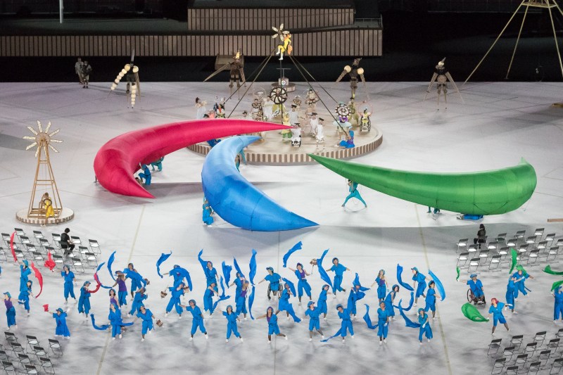 Performers bring together the Paralympic logo. (PHOTO CREDIT: Michael Clubine)