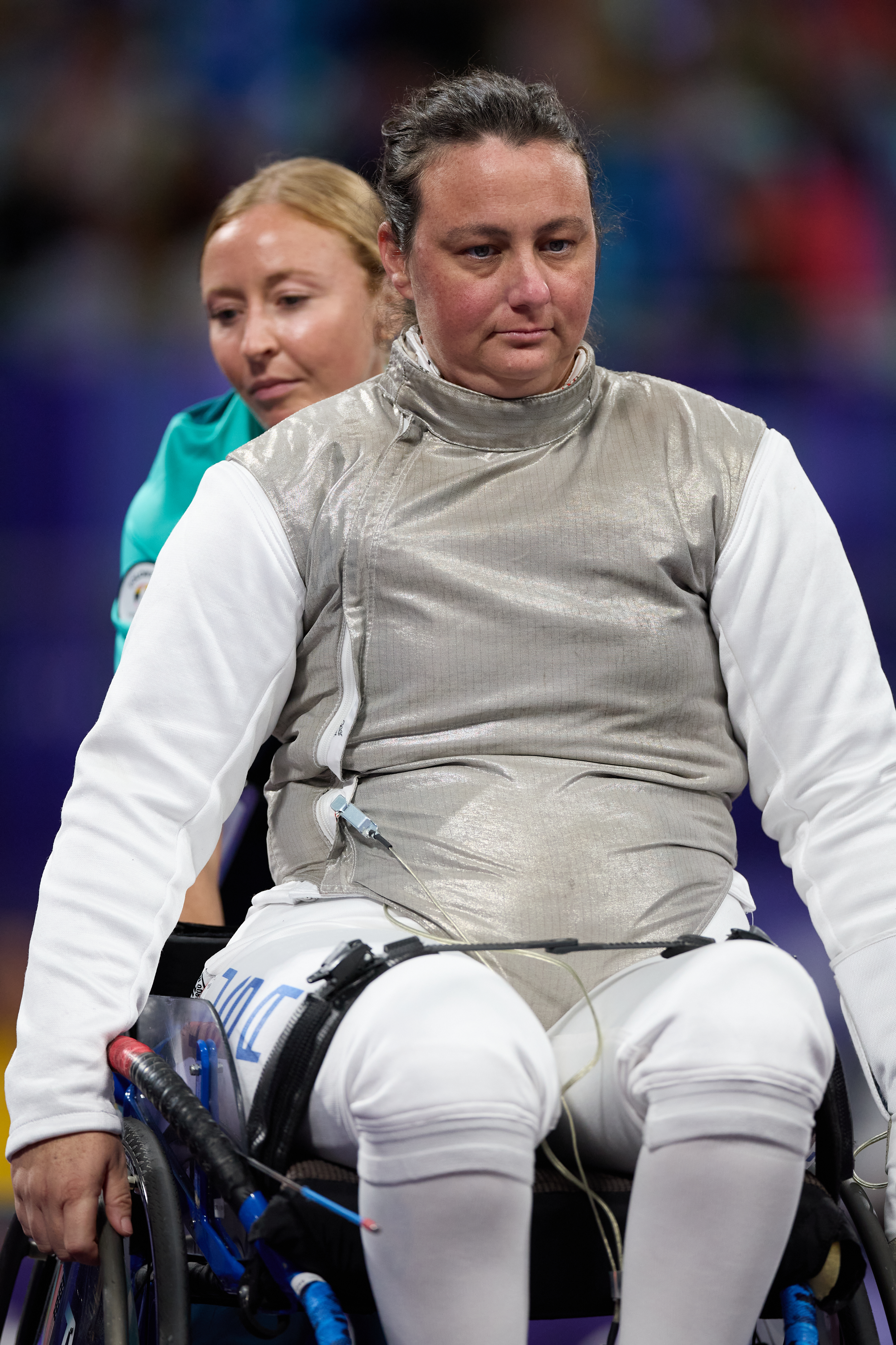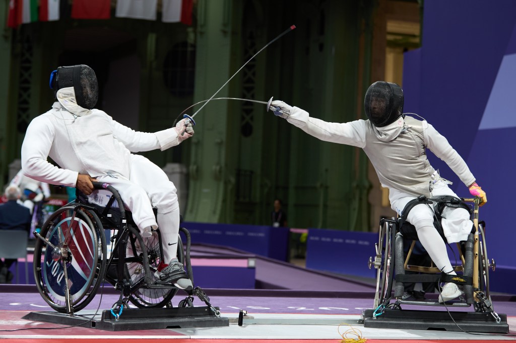 U.S. military veteran Jataya Taylor made her debut on the Paralympic stage in the women’s foil category A table of 32. Taylor, who only learned of wheelchair fencing in 2022 and aimed to make her debut in 2028, had the USA’s only win of the day that wasn’t teammate-on-teammate. She defeated South Korean Gyeong Hye Baek 15-5, collecting the last five hits of the match.