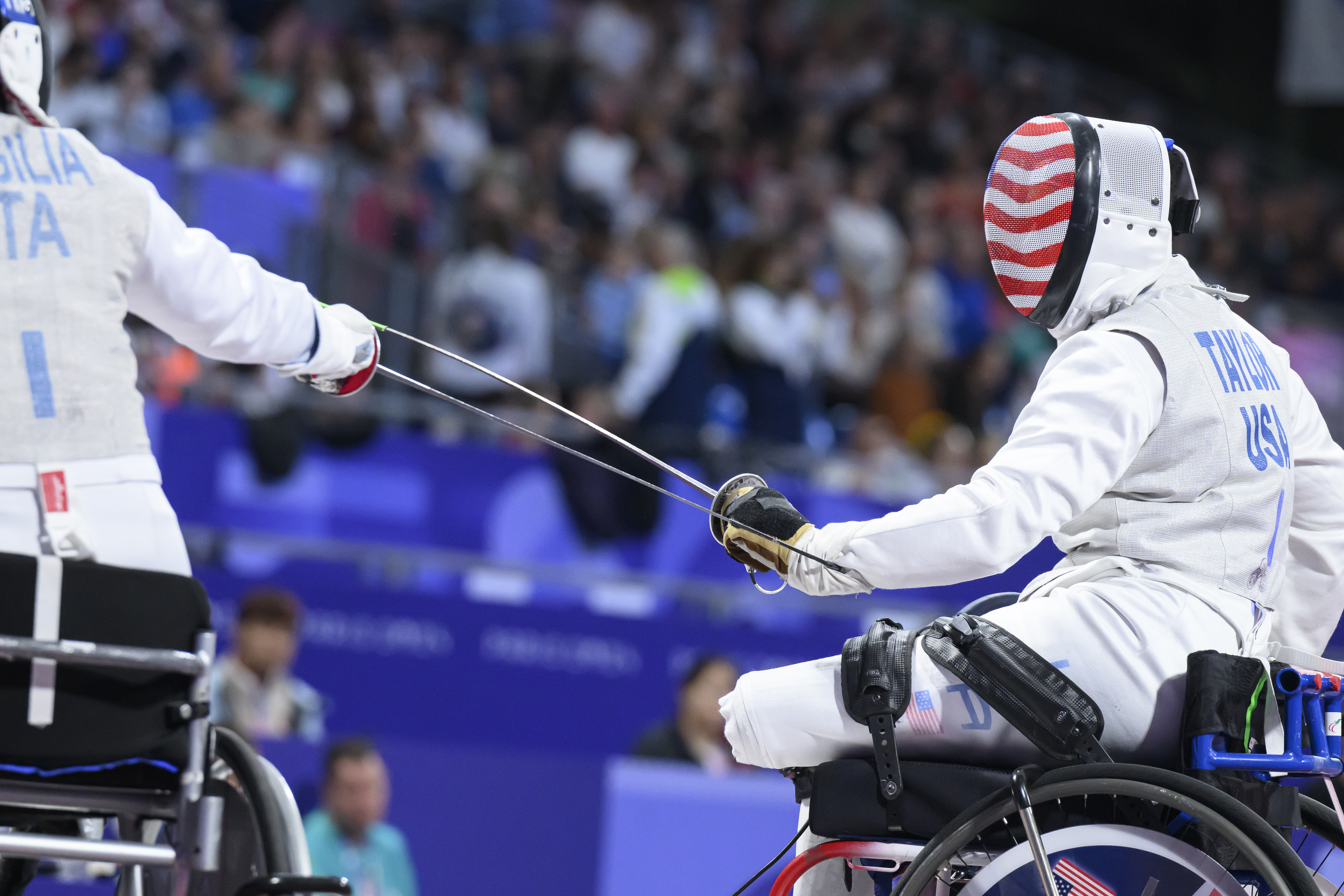 Paris, France — Both men’s and women’s Team USA wheelchair fencing took part in the foil team table of 16 competition on Thursday. It’s a single-elimination tournament with three fencers representing each country.