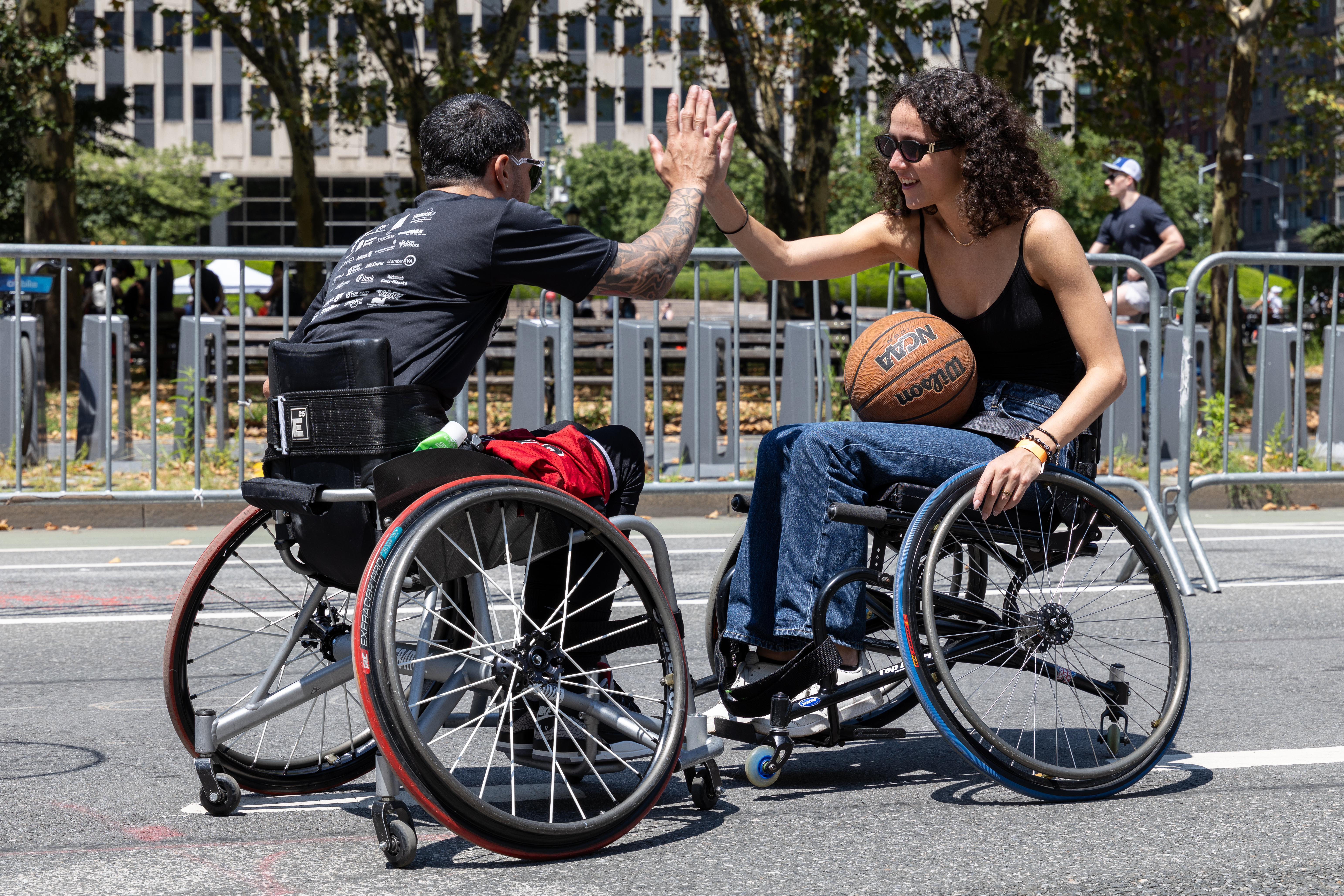 As part of New York City’s Summer Streets, the Wheelchair Sports Federation offered free hands-on wheelchair basketball to the public, complete with loaner sports chairs, athlete coaching, and open play. Whether pushing for the first time or trading shots with a new teammate, participants quickly found that this wasn’t just a demonstration; it was an invitation.