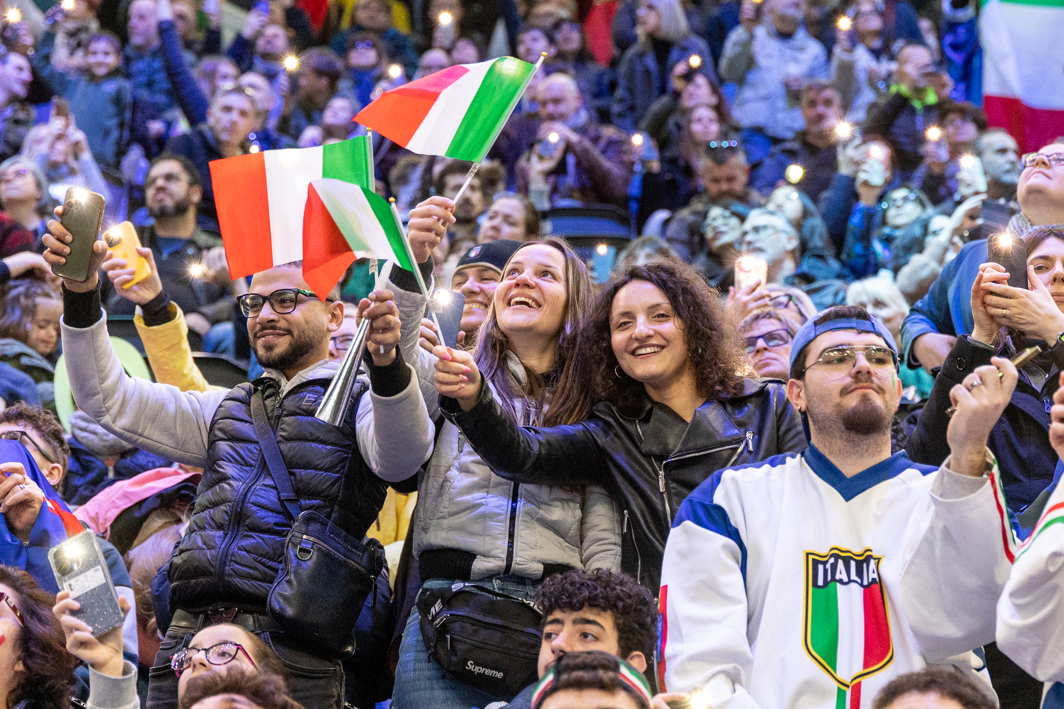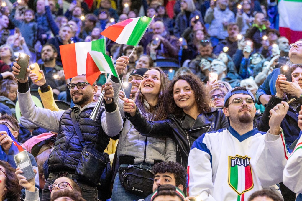 Still, the home crowd remained engaged throughout the evening. Nearly 9,000 spectators repeatedly chanted “Italia,” sang along with arena music and even started a wave that circled the arena for more than two minutes.