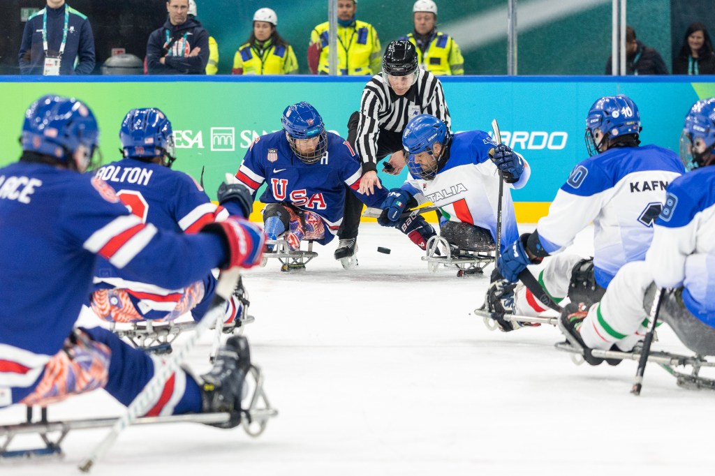 MILANO, ITALY — Four-time defending Paralympic champion United States opened the Paralympic para ice hockey tournament with a 14–1 victory over host Italy Saturday night at the Milano Santagiulia Ice Hockey Arena.