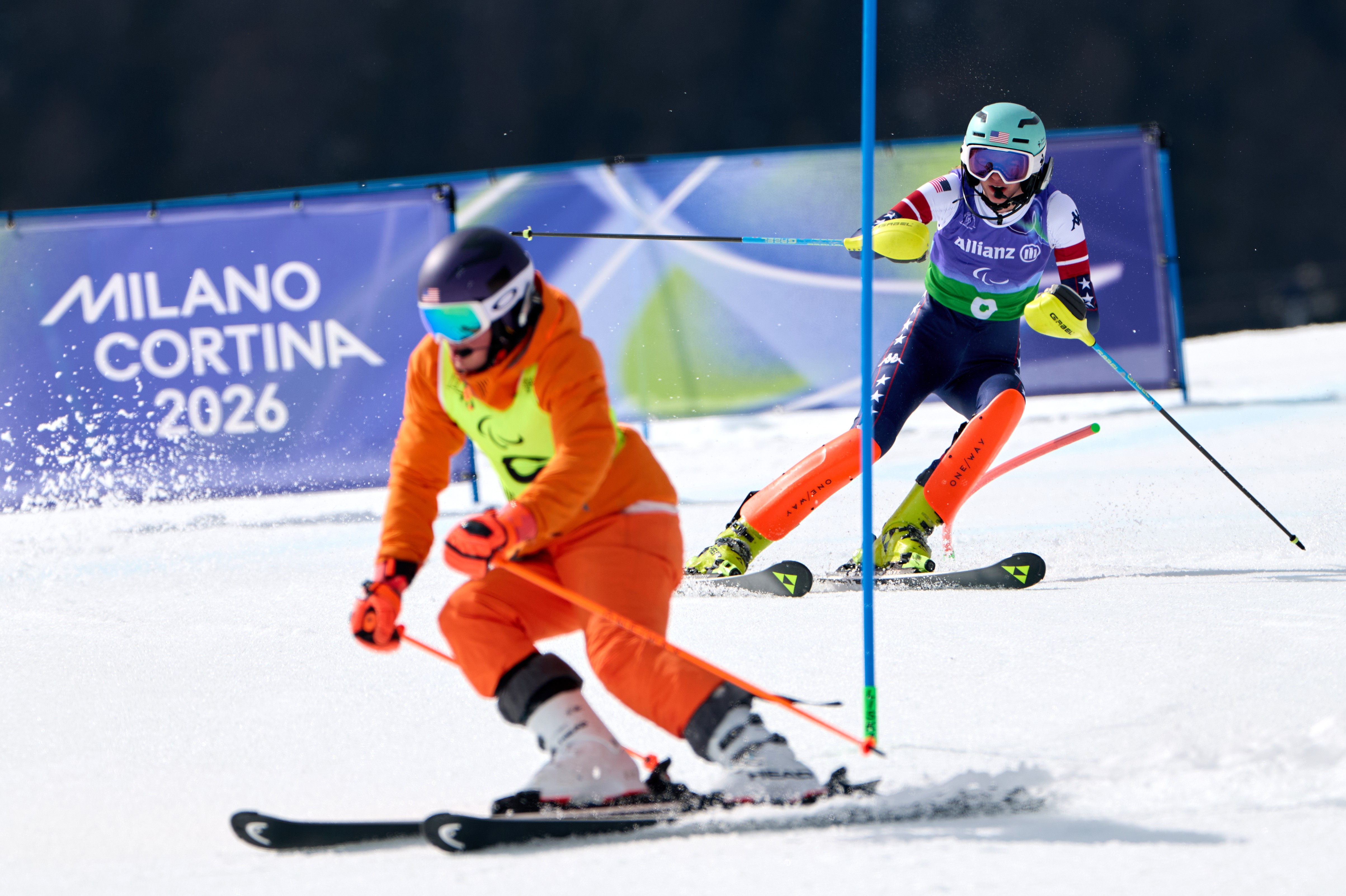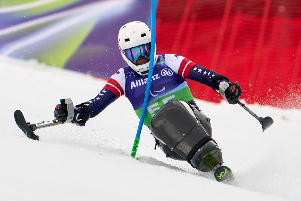 “I hate slalom,” Soens said with a laugh. “As sit skiers we can’t really cross-block the gates, so we’re just taking them to the chest and the face.”